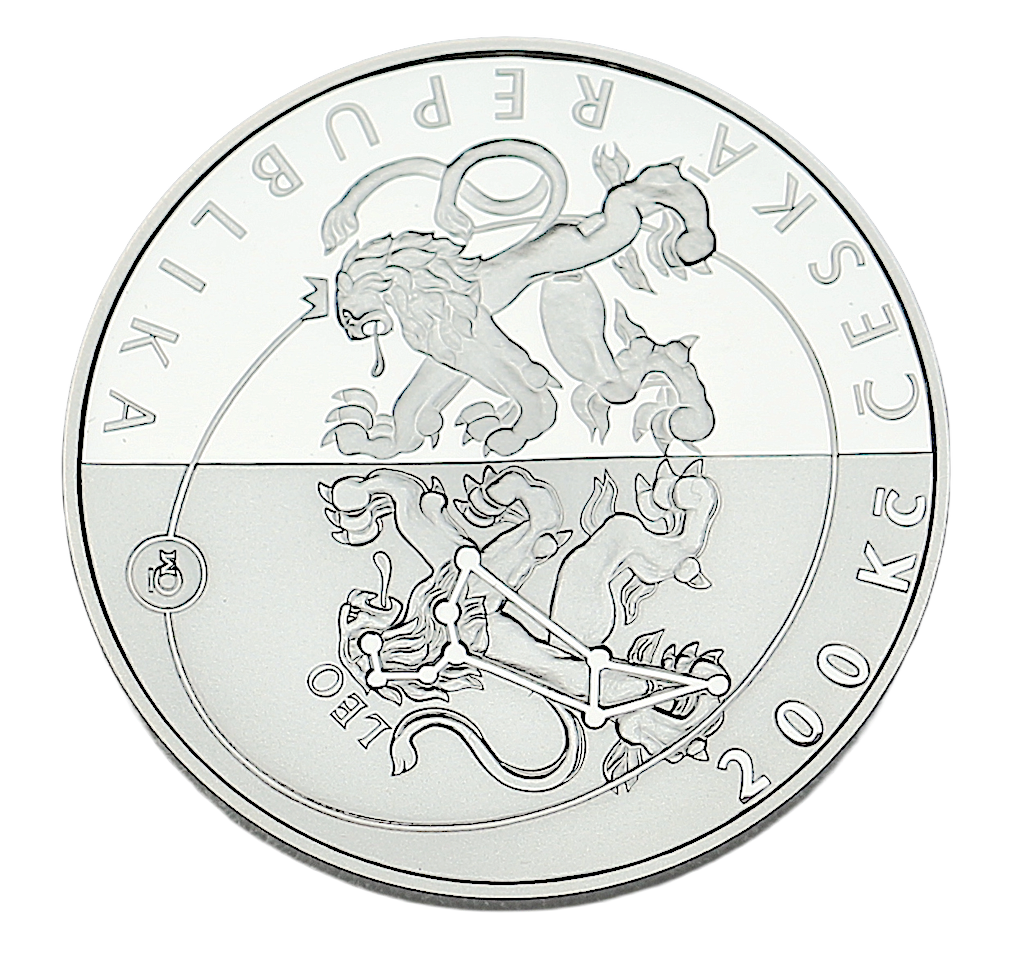 Na lícní straně dvousetkoruny je napravo od středu mincovního pole ztvárněn heraldický lev z velkého státního znaku České republiky. V levé části mince je zrcadlově zobrazen lev se symbolickým zvýrazněním souhvězdí Lva a jeho názvem "LEO" nad lví hlavou. Obě části mince jsou propojeny oběžnou dráhou s planetou Zemí. Po obvodu mince je v neuzavřeném opisu označení nominální hodnoty mince se zkratkou peněžní jednotky "200 Kč" a název státu "ČESKÁ REPUBLIKA". Značka České mincovny tvořená písmeny "Č" a "M" je umístěna ve středu planety Země. Na rubové straně dvousetkoruny dominuje vyobrazení Slunce, v jehož středu je emblém České astronomické společnosti s letopočty "1917 – 2017". Při vnějším obvodu slunečních paprsků je ztvárněna oběžná dráha s planetou Zemí. Po obvodu mince je v opisu text "ZALOŽENÍ ČESKÉ ASTRONOMICKÉ SPOLEČNOSTI". Iniciály autora mince MgA. Josefa Oplištila, které jsou tvořeny spojenými písmeny "J" a "O", jsou umístěny ve středu planety Země.