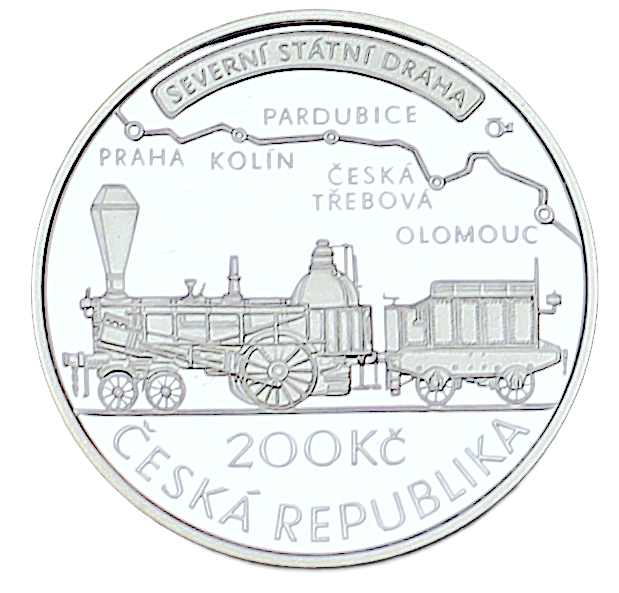 Na lícní straně mince je motiv parní lokomotivy, nad kterou je nákres vlakové trati mezi Prahou a Olomoucí, kterou projektoval Jan Perner. Při horním okraji dvousetkoruny je text "SEVERNÍ STÁTNÍ DRÁHA" v rámečku. Při spodním okraji dvousetkoruny je název státu "ČESKÁ REPUBLIKA". Označení nominální hodnoty mince se zkratkou peněžní jednotky "200 Kč" je nad názvem státu. Značka České mincovny tvořená kompozicí písmen "Č" a "M" je při pravém horním okraji dvousetkoruny za slovem "DRÁHA". Na rubové straně dvousetkoruny je portrét Jana Pernera. Při levém okraji dvousetkoruny je text "JAN PERNER" a při pravém okraji jsou letopočty "1815" a "2015". Texty i letopočty jsou na začátku a na konci ohraničeny tečkou. Nad límcem u portrétu jsou iniciály autora dvousetkoruny akademického sochaře Zbyňka Fojtů, které jsou tvořeny spojenými písmeny "FZ".